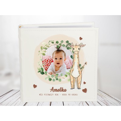 PERSONALIZOWANY ALBUM - to wyjątkowy prezent z okazji, roczku, urodzin. Pozwoli na przechowanie najcenniejszych wspomnień. Okładka zawiera zdjęcie maluszka, imię oraz ozdobną grafikę. SZCZEGÓŁY: format 10x15 / 200 zdjęć wymiar albumu szer. 20 cm, wys. 22,5 cm, grubość grzbietu 5 cm.