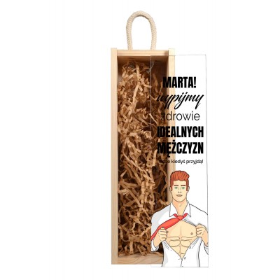 Elegancka, personalizowana skrzynka na wino została wykonana z wysokiej jakości drewna sosnowego, z wieczkiem ze szkła akrylowego i wygodnym uchwytem z naturalnego sznurka. Jest to świetna oprawa dla każdego trunku, który chcemy podarować w prezencie. Materiał: skrzynka-drewno / wieko -...