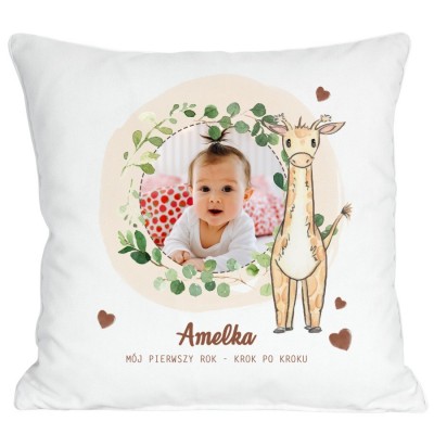 FOTO PODUSZKA Z TWOIM ZDJĘCIEM - to piękny prezent z okazji urodzin, roczku. Przepięknie będzie prezentować się w pokoju maluszka. Specyfikacja: Wymiary: 40cm x 40cm (+/-2cm) Poszycie: Mikrofibra Gramatura: 180g/m2 Wypełnienie z watoliny Poszewka z zamkiem Wysoka jakość nadruku Nadruk...