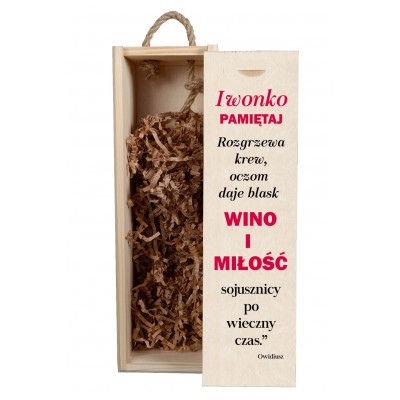 Szukasz wyjątkowego prezentu dla swojej mamy? Oto nasza propozycja. Skrzynka na wino z oryginalnym nadrukiem jest efektowna, może przydać się nie tylko do przechowywania alkoholu, ale także na trzymanie w niej innych przedmiotów i drobiazgów. Jest personalizowana, czyli nigdzie nie znajdziesz...