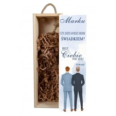 Skrzynka na alkohol dla świadka to idealny produkt, dzięki któremu w ORYGINALNY SPOSÓB POPROSISZ SWOJEGO NAJBLIŻSZEGO PRZYJACIELA, BRATA CZY INNĄ WAŻNĄ W TWOIM ŻYCIU OSOBĘ o zostanie świadkiem.