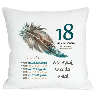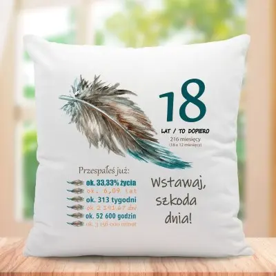 Poduszka na 18 urodziny z liczbą przespanego czasu