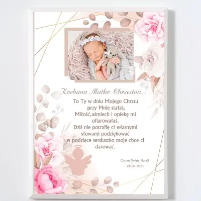 Chrzest Święty to wyjątkowy dzień w życiu Twojego dziecka. Wybierając rodziców chrzestnych kierujesz się dobrem swojego maluszka. Podziękuj im za obecność w tym szczególnym dniu w oryginalny sposób. Podziękowania ze zdjęciem Twojej pociechy z całą pewnością ich zachwycą.