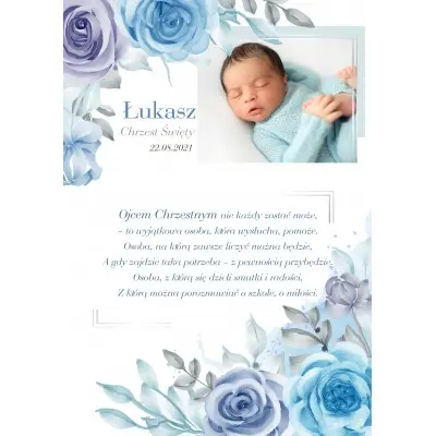 Chrzest Święty to wyjątkowy dzień w życiu Twojego dziecka. Wybierając rodziców chrzestnych kierujesz się dobrem swojego maluszka. Podziękuj im za obecność w tym szczególnym dniu w oryginalny sposób. Podziękowania ze zdjęciem Twojej pociechy z całą pewnością ich zachwycą.
