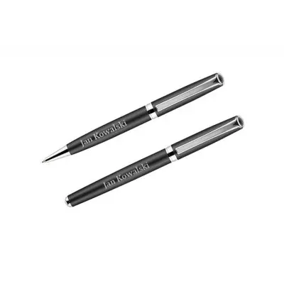 wiecznego. Przybory piśmiennicze wykonane z metalu zapakowane są w etui z czarnej ekoskóry.
