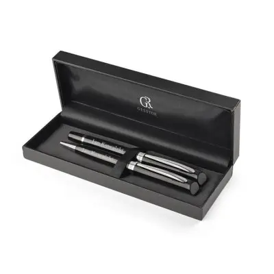 Zestaw piśmienniczy o klasycznej elegancji zawierający długopis oraz pióro kulkowe.