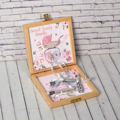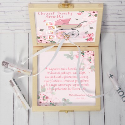 DREWNIANE I BARDZO EFEKTOWNE PUDEŁKO NA PIENIĄDZE – NIEZWYKŁY PREZENT NA CHRZEST DLA DZIEWCZYNKI