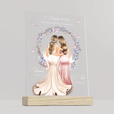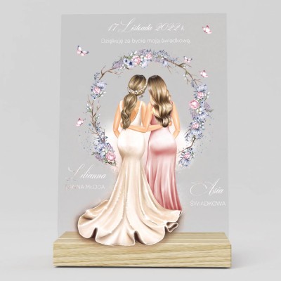 Podziękowanie na plexi to elegancki prezent, aby w efektowny sposób podziękować świadkowej. W piękny sposób wyrazicie wdzięczność za pomoc w przygotowaniach, dobre rady, obecność i otrzymane życzenia. Obdarowana świadkowa z pewnością będzie zachwycona, gdy otrzyma taki prezent.