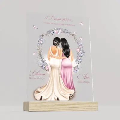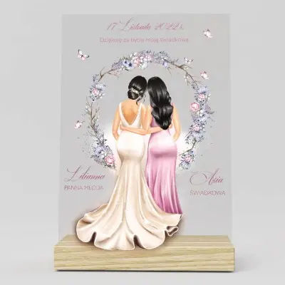 Podziękowanie na plexi to elegancki prezent, aby w efektowny sposób podziękować świadkowej. W piękny sposób wyrazicie wdzięczność za pomoc w przygotowaniach, dobre rady, obecność i otrzymane życzenia. Obdarowana świadkowa z pewnością będzie zachwycona, gdy otrzyma taki prezent.
