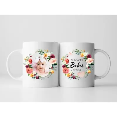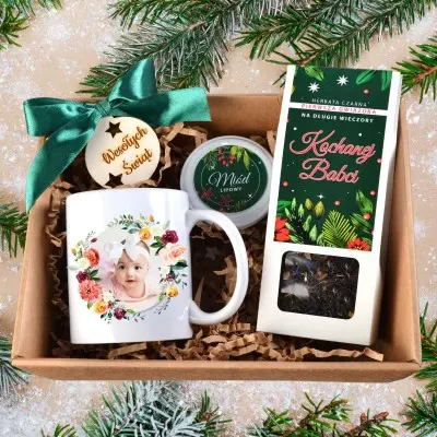 Personalizowany kubek dla Babci ze zdjęciem – zestaw prezentowy z herbatką i miodem