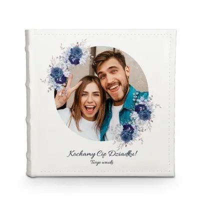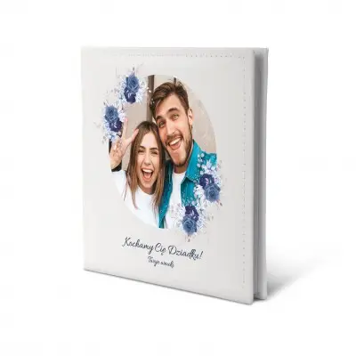 Podaruj swojemu dziadkowi prezent, który spowoduje łzy szczęścia. Zdjęcie, które nam wyślesz zostanie oprawione w niebiesko-białe kwiaty, które dodadzą lekkości i elegancji albumowi. Dodamy również spersonalizowany napis lub życzenia.