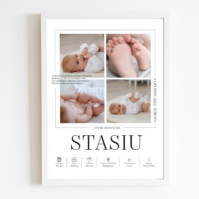METRYCZKA URODZENIA A4 + RAMKA BIAŁA