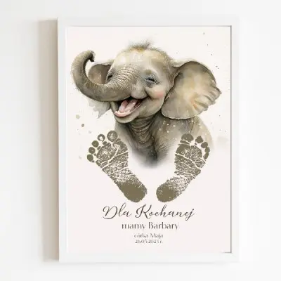 Plakat z minimalistycznym designem idealnie pasuje do każdego wnętrza, a biała drewniana ramka sprawia, że prezent od razu jest gotowy do zawieszenia. Na plakacie znajduje się miejsce na odcisk stópek, co dodaje mu osobistego, emocjonalnego charakteru. Taki prezent będzie wzruszającym przypomnieniem o pierwszych, najpiękniejszych chwilach, które spędziliście razem.