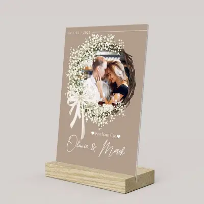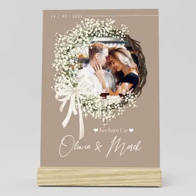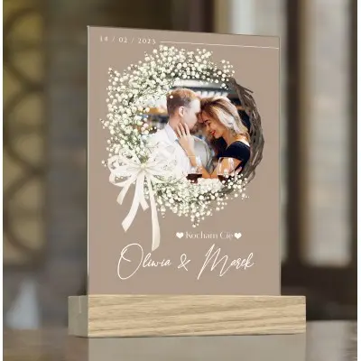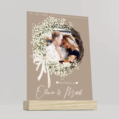 Elegancka statuetka wykonana jest z wysokiej jakości szkła akrylowego, co nadaje jej nowoczesny i stylowy wygląd. Na powierzchni szklanej umieszczamy personalizowany nadruk, który może zawierać imiona, datę ważnego wydarzenia, a także inspirujący cytat lub dedykację, według Twoich własnych preferencji.