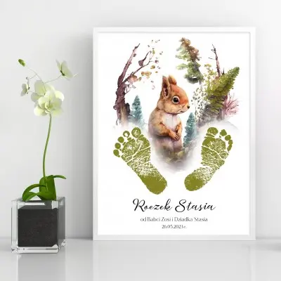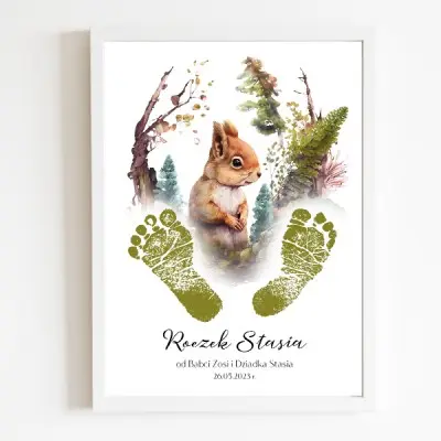 Podaruj oryginalny prezent w formie plakatu na którym znajduje się grafika i miejsce na odcisk stópek.