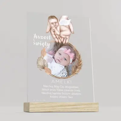 Szukasz wyjątkowego prezentu dla dziecka z okazji Chrztu Świętego?Forma statuetki, na szkle akrylowym z podstawką to pamiątka na całe życie. Minimalistyczna forma sprawdzi się w każdym wnętrzu. Gwarantujemy, że prezent będzie wywoływał masę wzruszeń i emocji.
