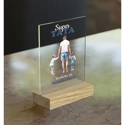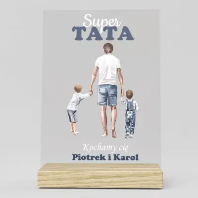 Personalizowana statuetka na szkle akrylowym z piękną grafiką i imieniem dziecka na prezent dla ukochanego Taty