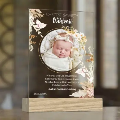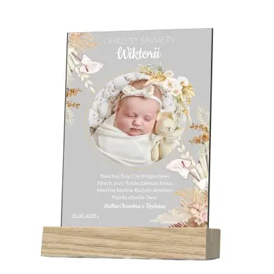Prezent z okazji Chrztu Świętego ze zdjęciem – Statuetka w stylu boho będzie piękną dekoracją pokoju dziecka, a jednocześnie będzie miałą pamiątką z tej wyjątkowej okazji. Minimalistyczna forma sprawdzi się w każdym wnętrzu. Piękna i elegancka dekoracja, która z pewnością zachwyci każdego, kto ją zobaczy.