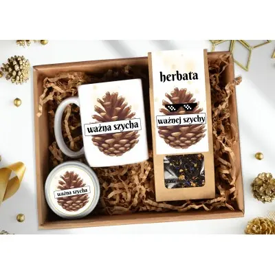 Zestaw „WAŻNA SZYCHA” to połączenie ciepła, smaku i dystansu – idealny prezent dla współpracowników, klientów i wszystkich, którzy zasługują na chwilę relaksu w świątecznym stylu.