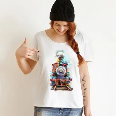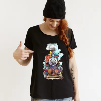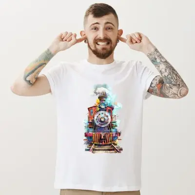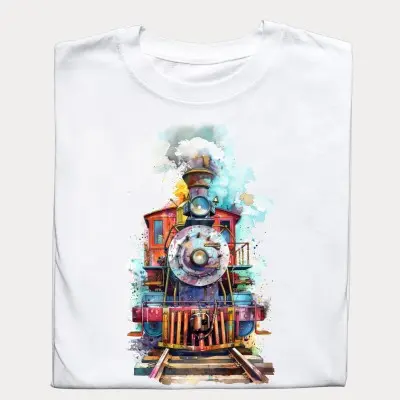 Koszulka z grafiką lokomotywy w kolorowych barwach to idealny wybór dla miłośników kolejnictwa i oryginalnych wzorów. Wykonana z miękkiej, wysokiej jakości bawełny, zapewnia komfort i trwałość. Barwna ilustracja lokomotywy na przodzie koszulki nadaje jej dynamiczny i unikalny charakter. Klasyczny krój i wyrazista grafika sprawiają, że koszulka świetnie sprawdzi się w codziennych stylizacjach.