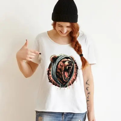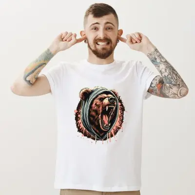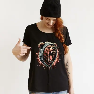 Koszulka z grafiką groźnego pyska niedźwiedzia to świetny wybór dla miłośników dzikiej przyrody. Wykonana z wysokiej jakości bawełny, zapewnia komfort noszenia. Wyrazista grafika niedźwiedzia nadaje jej dramatyczny charakter, a klasyczny krój z okrągłym dekoltem sprawia, że pasuje do różnych stylizacji. Idealna dla tych, którzy chcą wyróżnić się i podkreślić swoją miłość do natury.