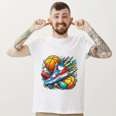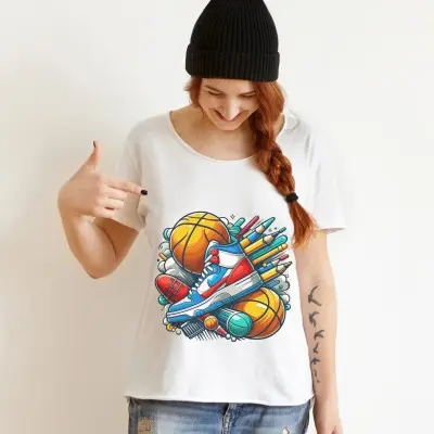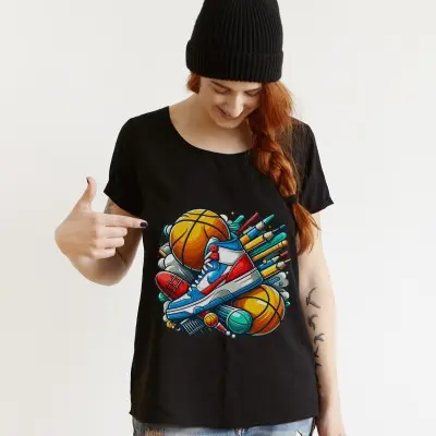 Napisz pierwszą opinię o „Koszulka z kolorową grafiką piłki i sportowego buta | Sportowy styl”