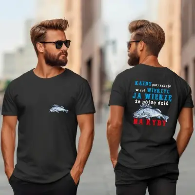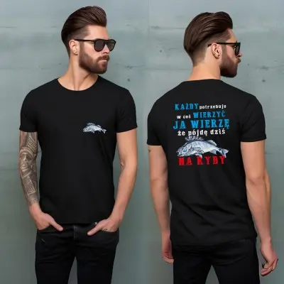 Wyraź swoją pasję wędkarską i poczucie humoru dzięki koszulce z napisem „Każdy potrzebuje w coś wierzyć, ja wierzę, że pójdę dziś na ryby”. Ta koszulka, ozdobiona grafiką ryby, to doskonały wybór dla wszystkich, którzy żyją z wędką w ręku i nigdy nie tracą nadziei na kolejną udaną wyprawę.
