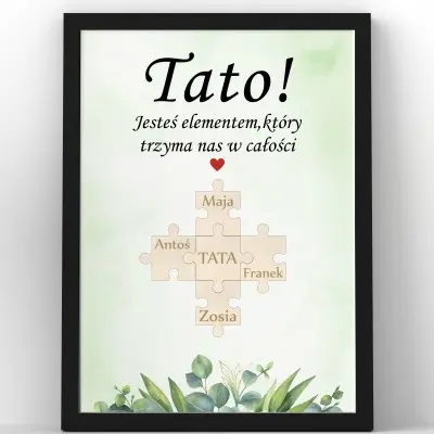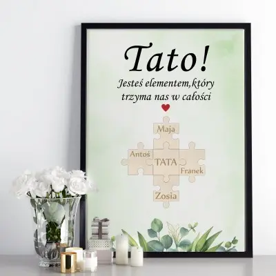 Obdaruj swojego tatę wyjątkowym prezentem, który wyrazi Twoje uczucia i podkreśli, jak ważną rolę odgrywa w Twoim życiu! Plakat z grafiką i drewnianymi wypukłymi puzzlami z grawerem to oryginalny sposób na uhonorowanie najukochańszej osoby.