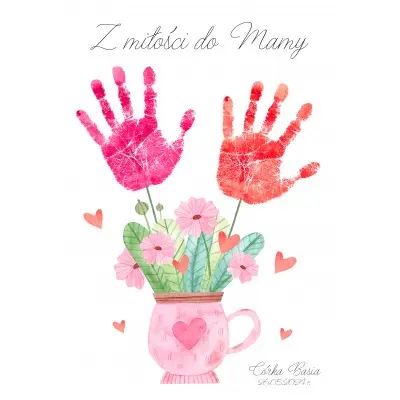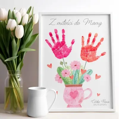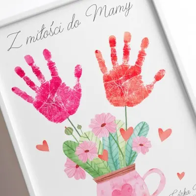 Obdarz swoją mamę wyjątkowym prezentem, który wyrazi Twoją miłość i sprawi, że na jej twarzy pojawi się uśmiech! Plakat z grafiką i miejscem na odcisk dłoni to oryginalny sposób, aby uczcić jej święto.