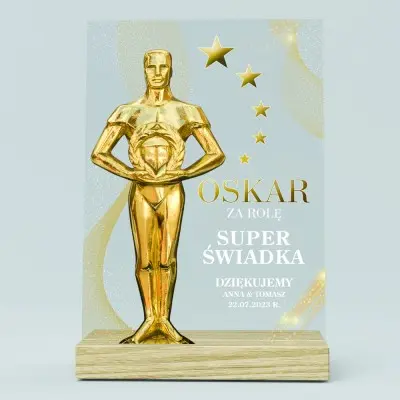 Szukasz oryginalnego sposobu, by podziękować swojemu świadkowi? Nasza statuetka w formacie 15×21 cm z grafiką Oskara to idealny wybór!