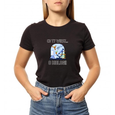 Koszulka z napisem „Co Ty Wiesz o Biologii?” i stylową grafiką to idealny wybór dla pasjonatów nauk przyrodniczych! Wykonana z miękkiej, wysokogatunkowej bawełny, jest wygodna w noszeniu i trwała, co czyni ją doskonałą na co dzień lub na specjalne okazje, takie jak zajęcia, warsztaty czy konferencje biologiczne.
