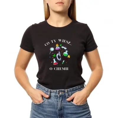 Koszulka z napisem „Co Ty Wiesz o Chemii?” i kolorową grafiką to świetny wybór dla każdego miłośnika chemii! Wykonana z wysokiej jakości bawełny, zapewnia wygodę i trwałość, dzięki czemu doskonale nadaje się do noszenia na co dzień, na zajęcia, w laboratorium, czy jako zabawny element stroju na imprezy tematyczne. Kolorowa grafika, nawiązująca do chemii, przyciąga wzrok i sprawia, że koszulka jest nie tylko praktyczna, ale i stylowa.