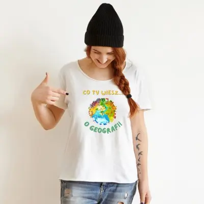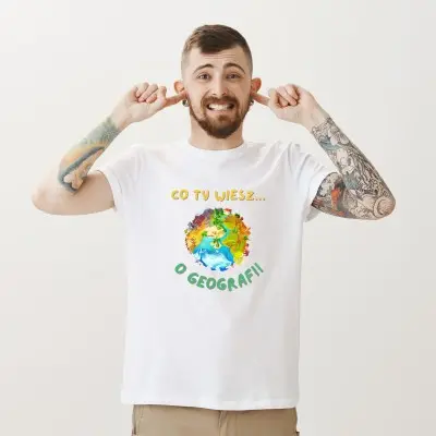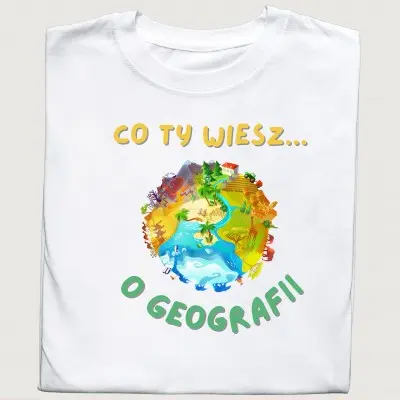 Koszulka z napisem „Co Ty Wiesz o Geografii?” i kolorową grafiką kuli ziemskiej to świetny wybór dla każdego miłośnika geografii! Wykonana z wysokiej jakości bawełny, jest wygodna, trwała i idealna do noszenia na co dzień. Kolorowa grafika przedstawiająca kulę ziemską sprawia, że koszulka jest nie tylko praktyczna, ale także estetyczna. To doskonały prezent dla nauczyciela geografii, ucznia, studenta lub każdego pasjonata tej nauki.