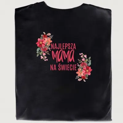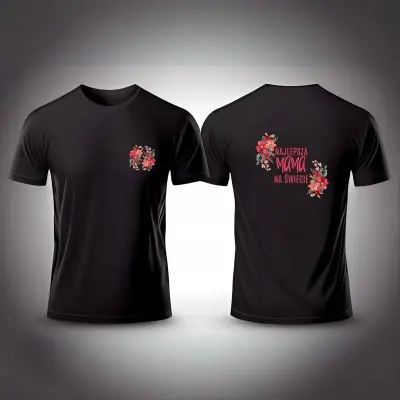 Wyjątkowa koszulka z pięknym nadrukiem w odcieniach czerwieni i uroczą grafiką kwiatów to idealny sposób, by pokazać swojej mamie, jak bardzo ją kochasz i doceniasz. Napis „Najlepsza Mama na Świecie” dopełnia całość, czyniąc z niej nie tylko praktyczny element garderoby, ale i wyraz Twojej wdzięczności oraz miłości.
