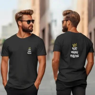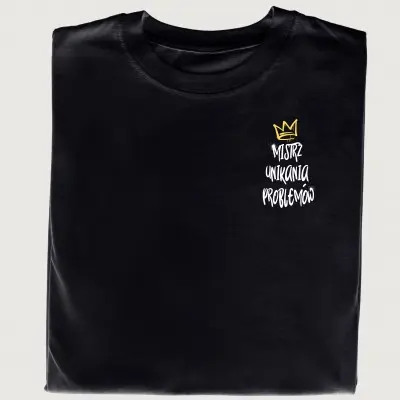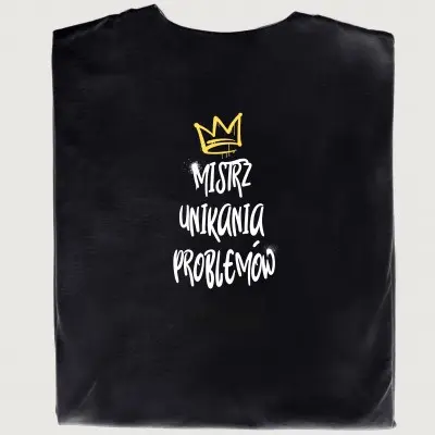 Koszulka z nadrukiem przedstawiającym koronę i napis „MISTRZ UNIKANIA PROBLEMÓW” to idealny wybór dla każdego, kto z humorem podchodzi do życia i ma talent do unikania kłopotów! Stylowa grafika z koroną dodaje królewskiego charakteru, a żartobliwy napis podkreśla wyjątkową cechę noszącego. Wykonana z wysokiej jakości materiałów, koszulka jest wygodna i trwała, idealna na co dzień.