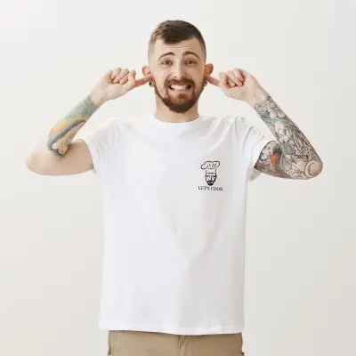 Koszulka z grafiką przedstawiającą kontury kucharza i napisem „LET’S COOK” to idealny wybór dla pasjonatów gotowania i kuchennych eksperymentów! Wyrazisty nadruk z elegancką grafiką kucharza nadaje koszulce charakteru, idealnie wyrażając miłość do sztuki kulinarnej.