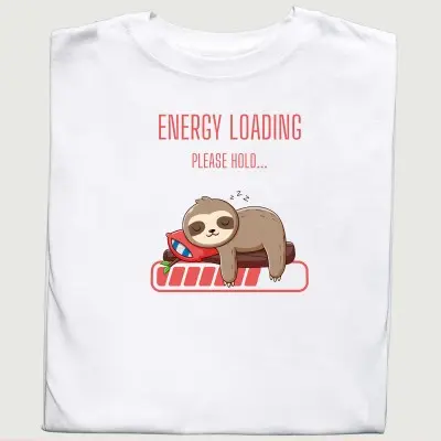 Koszulka „Energy Loading” ze śpiącym leniwcem – idealny prezent z humorem!