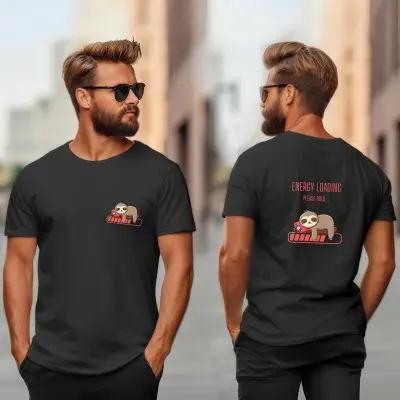 Podaruj sobie lub bliskiej osobie odrobinę luzu z wyjątkową koszulką, która rozbawi każdego. Na koszulce widnieje urocza grafika śpiącego leniwca zwisającego z gałęzi, idealnie oddająca klimat relaksu i wolnego tempa życia. Całość dopełnia dowcipny napis „ENERGY LOADING”, który w humorystyczny sposób sugeruje, że nie każdemu od razu wstaje się na pełnych obrotach!