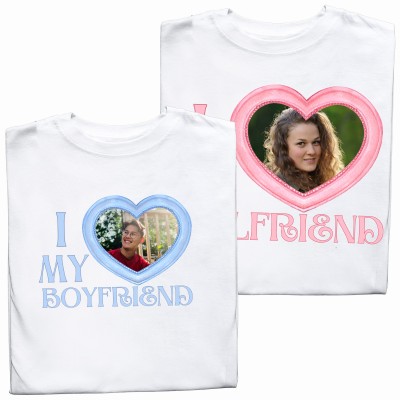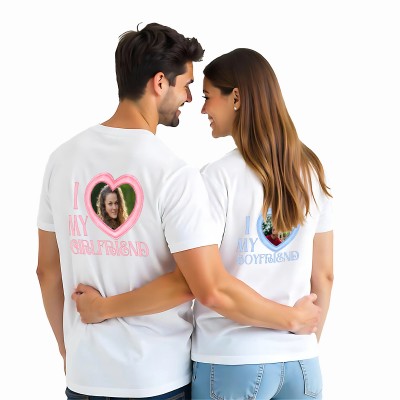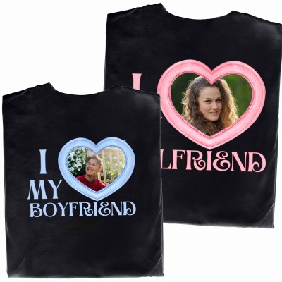 Dla Niego – Z przodu małe serce, z tyłu duże serce z Waszym wspólnym zdjęciem oraz napis „I MY GIRLFRIEND”.