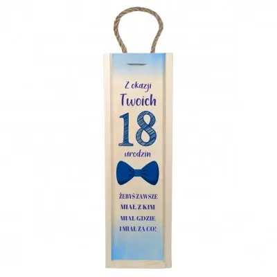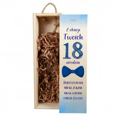 Twoja znajoma lub znajomy wchodzi w dorosłość? No to czas na prezent z klasą (i procentami)! Ta drewniana skrzynka pomieści butelkę ulubionego trunku i sprawi, że osiemnastkowy toast będzie jeszcze bardziej wyjątkowy!