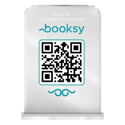 Ułatw swoim klientom umawianie wizyt w szybki i wygodny sposób! Elegancki stojak z kodem QR do Booksy to nowoczesne rozwiązanie, które pozwoli Twoim klientom zarezerwować kolejną wizytę w kilka sekund – wystarczy zeskanować kod smartfonem i przejść bezpośrednio do Twojego profilu w Booksy.
