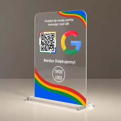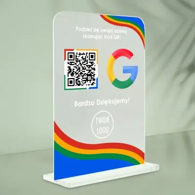 Zadbaj o swoją reputację online i ułatw klientom wystawianie opinii! Minimalistyczna tabliczka ze szkła akrylowego z podstawką to elegancki i praktyczny sposób na zbieranie recenzji w Google. Wystarczy, że klient zeskanuje kod QR, a w kilka sekund znajdzie się na Twoim profilu i zostawi opinię, pomagając budować zaufanie do Twojej firmy.
