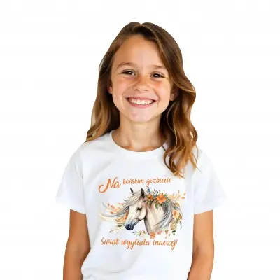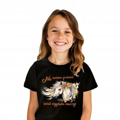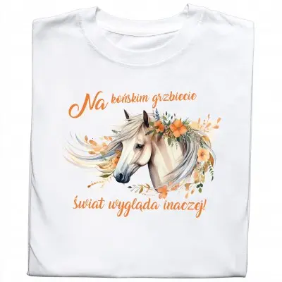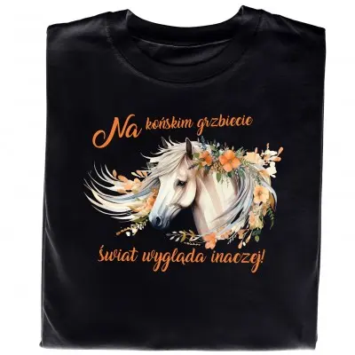 Koszulka „Na Końskim Grzbiecie Świat Wygląda Inaczej” – Dla Prawdziwych Miłośników Koni!