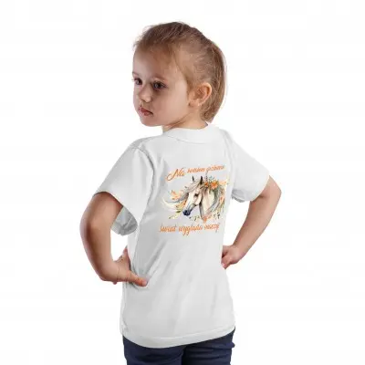 Kochasz konie i czujesz, że świat z ich grzbietu wygląda piękniej? Ta koszulka jest stworzona właśnie dla Ciebie! Elegancka grafika konia otoczonego kwiatami w połączeniu z inspirującym napisem sprawia, że to idealny wybór dla każdej miłośniczki i miłośnika jeździectwa.