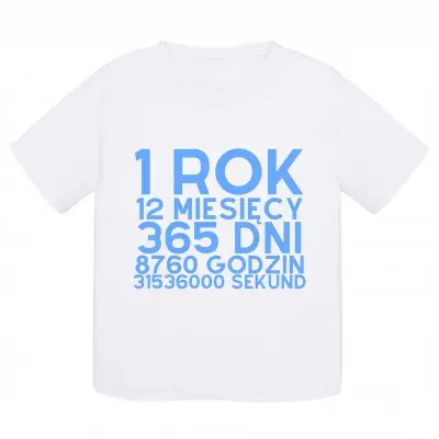 Koszulka na Roczek dla Chłopca – „1 Rok, 12 Miesięcy, 365 Dni, 8760 Godzin