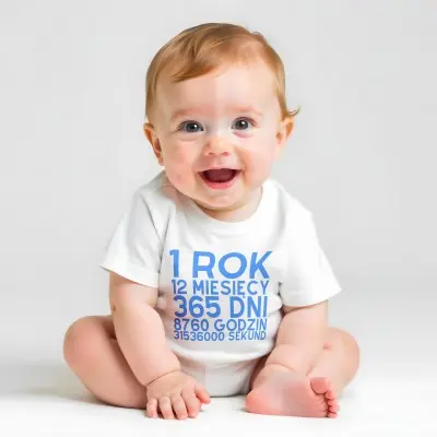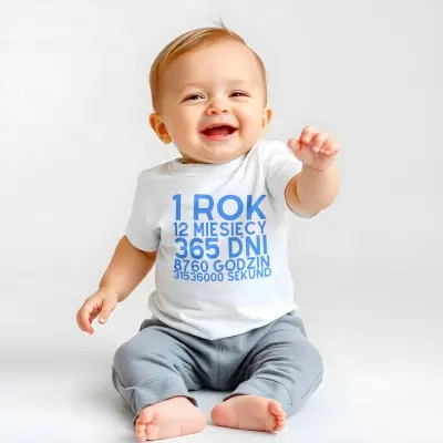Pierwsze urodziny to moment pełen radości, który zasługuje na wyjątkową pamiątkę! Koszulka z napisem „1 Rok, 12 Miesięcy, 365 Dni, 8760 Godzin” to świetny wybór na tę okazję, idealnie podsumowując czas, który minął od narodzin maluszka. Zabawny i pełen radości nadruk sprawi, że maluszek będzie wyglądał wyjątkowo w tym szczególnym dniu.