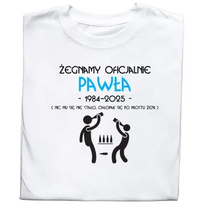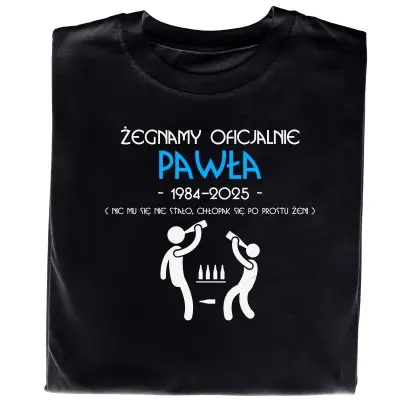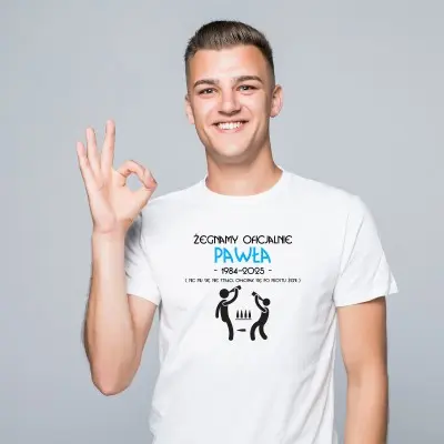 Szukasz idealnej koszulki na wieczór kawalerski? Oto ona! Super fajna koszulka z napisem „Żegnamy oficjalnie [Imię] – niech wszyscy widzą, jak się bawi super ekipa!” to must-have na niezapomnianą imprezę!