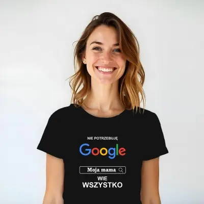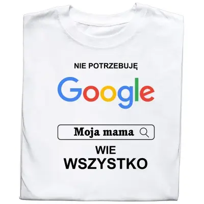Jeśli chcesz podarować komuś zabawny, ale pełen miłości prezent, ta koszulka jest strzałem w dziesiątkę! Z napisem „Nie Potrzebuję Google, Moja Mama Wie Wszystko”, wyrażasz w prost sposób, jak bardzo cenisz mądrość i pomoc swojej mamy, a także jej nieocenioną rolę w Twoim życiu. To świetny sposób, by pokazać, jak bardzo doceniasz to, że mama jest najlepszym źródłem wiedzy i wsparcia!