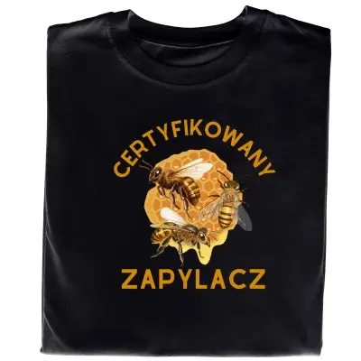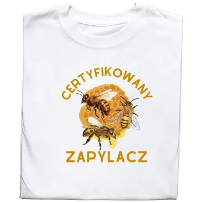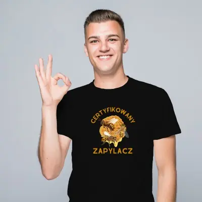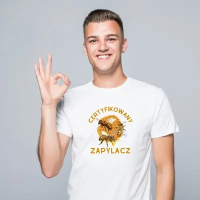 Ta wyjątkowa koszulka to świetny wybór dla wszystkich, którzy kochają przyrodę, pszczoły i ekologię! Grafika plastra miodu z pszczołami w połączeniu z napisem „Certyfikowany Zapylacz” sprawia, że ten model wyróżnia się humorem i oryginalnym stylem.