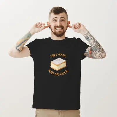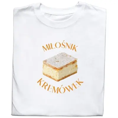 Lubisz dobre jedzenie, a szczególnie kremówki? Ta koszulka jest dla Ciebie! Zabawna grafika kremówki oraz napis „Miłośnik Kremówek” to świetny sposób na wyrażenie swojej słodkiej pasji z humorem. Bo koszulki nie muszą być nudne – mogą być apetyczne!
